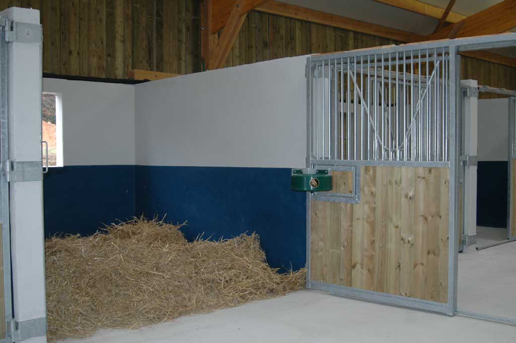 Le nettoyage des boxes est une corvée pour la plupart des propriétaires de chevaux. La façade de boxe ouvrante Equina permet d'ouvrir le boxe sur toute la largeur. Il est alors plus facile de curer le boxe en ayant plus d'espace pour y accéder ou en utilisant un engin adapté.